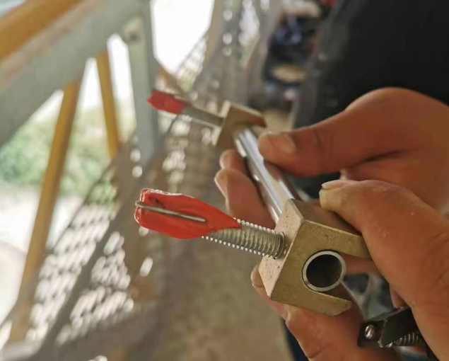 A、在混凝土(tǔ)結構表面打上(shàng)兩個(gè)Ø8的(de)孔(可(kě)安裝Ø6的(de)膨脹螺釘),孔中心距為(wèi)150mm(配有(yǒ™u)專用(yòng)定位安裝工(gōng)具)。