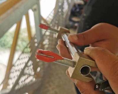 B、上(shàng)膨脹螺釘并将孔內(nèi)間(jiān)隙用(yòng)強力粘結膠填滿後裝上(shàng)方墊片,待≥膠固化(huà)再将應變計(jì)裝入膨脹螺釘內(nèi)。